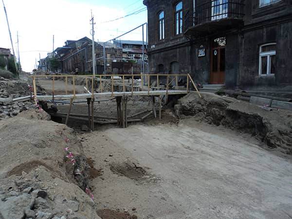 Ամիսներ շարունակ Գյումրու Ռուսթավելի փողոցում, քանդման-փորման աշխատանքներ էին ընթանում: Գյումրեցիներն իրենց բնազդին «վստահելով», թերևս, արդեն հաշտվել էին այն իրողության հետ, թե այս աշխատանքներն էլ ձգձգվելու են անվերջ կամ, լավագույն դեպքում, շահագործումից հետո այն բազում թերություններով է «հանձնվելու»: Ինչպես միշտ: Ու մնում էր «զմայլվել» նրանով, թե ինչպես է տարածքը պատերազմական ֆիլմի նկարահանման հրապարակի վերածվել: Այնպես որ, սկզբում մտածում էի, եթե այս ընթացքն համընկներ հենց պատերազմական թեմայով որևէ ֆիլմի ստեղծման նախագծի հետ, ապա այստեղ կարող էին գտնել պատրաստի նկարահանման հրապարակ: Ափսոս «կինոշնիկներիը» չգնահատեցին պատեհ առիթը, չսկսեցին նկարահանումները, այն դեպքում, երբ հարկ չէր լինի ռմբակոծված քաղաքի տեսարանն արհեստականորեն սարքել:
